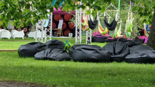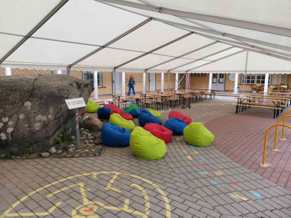 The bean bags are made of artificial leather and can therefore also be used outdoors.