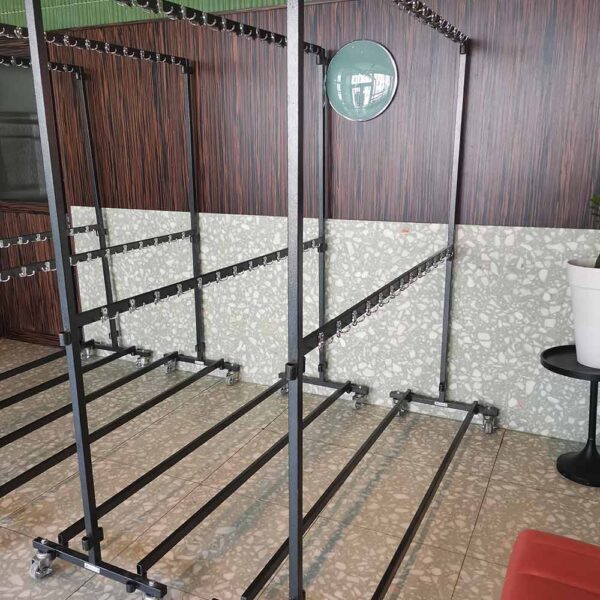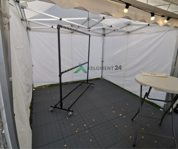 To ensure privacy and separation of spaces in the wardrobe, we rent a selection of partitions on wheels.