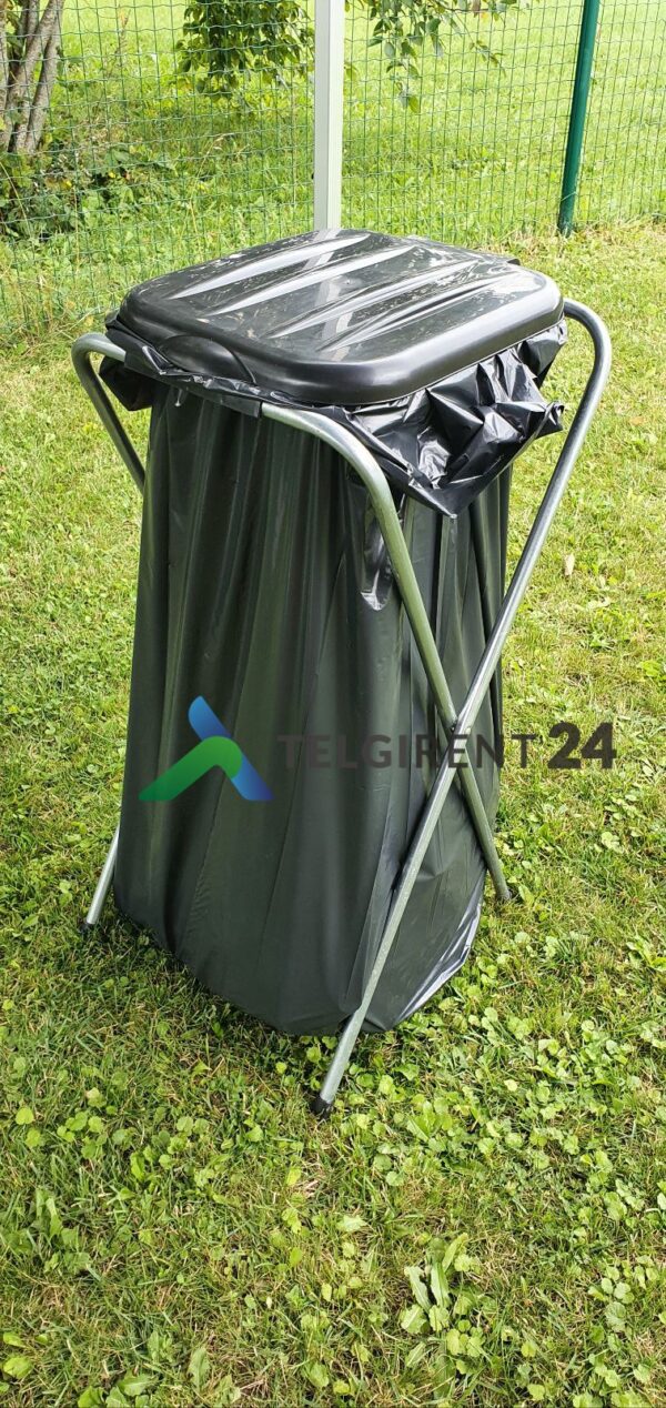 The solid-looking trash bag holder with lid is easy to fold and fits into any car.  120 l trash bags fit the trash bag holder. You can buy more trash bags here: 120 l trash bag, yellow