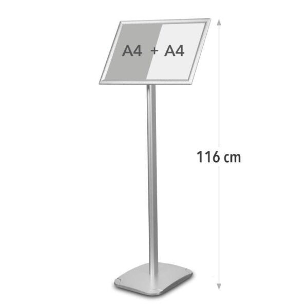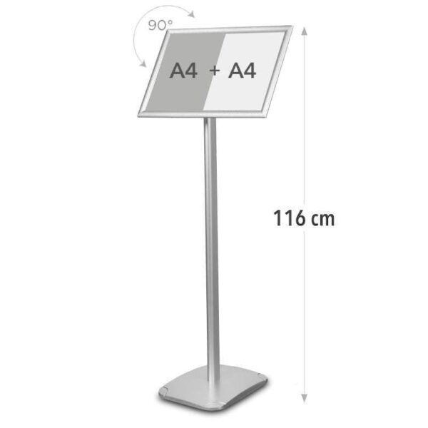 Elegantne infostend on mõeldud restorani menüü, juhiste, infotahvlite jaoks. Klõpsraamil olevat plakatit on imelihtne vahetada. Stendi jalg on valmistatud terasest, tänu millele on see väga stabiilne ja sobib suurepäraselt õues kasutamiseks. Mõõtmed: 24 x 33cm Kõrgus: 132cm A2 suuruses on saadaval must ja hall jalaga infotahvel A3 suuruses on saadaval must ja hall jalaga infotahvel