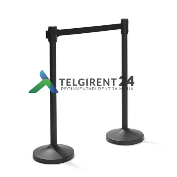 Roostevabast terasest väljatõmmatava lindiga must matt piirdepost. Lindi pikkus 180cm.