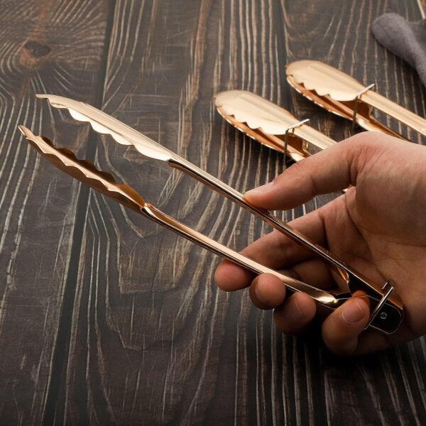 Meie kuldsed serveerimistangid sobivad suurepäraselt pidude, pulmade ja teiste erisündmuste atmosfäärilise täiendamise jaoks. Need säravad tanged sobivad nii kätte andmiseks kui ka dekoratiivseks elemendiks, luues alati elegantse ja nägusa mulje. Kasutades neid koos teiste kuldsete või kooritud nõudega, saate hõlpsasti luua stiilse ja ühtse laua kujunduse.