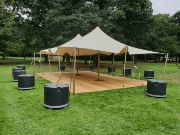 Stretch kangas 560 g/m² koosneb kolmest kihist ja on väljastpoolt töödeldud veekindla PVC kattega. Lisaks on see tulekindel vastavalt klassile M2, UV-kindel ja tuulekindel kuni 8 beaufortini (85 km/h). See talub tõmbejõude kuni 1000 N / 5 cm. Meie kahekordselt kattega stretch peotelgid sobivad ideaalselt pikemaajaliseks poolprofessionaalseks kasutamiseks (mõnest nädalast kuni mõne kuuni) ja neid on kahe või kolme inimesega lihtne püstitada, sõltuvalt suurusest.