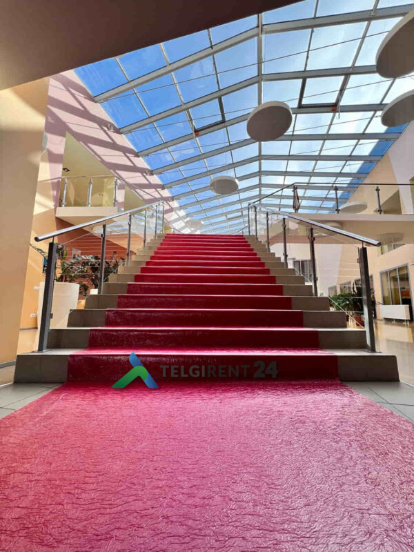 Vaip on kaetud kilekattega, mis eemaldatakse peale paigaldust ja enne sündmuse algust, vaip kinnitatakse põranda külge kahepoolse teibiga ja jääb pärast sündmust Teile.